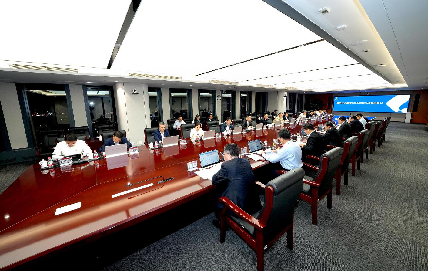 10月19日下午,通用技術集團黨組書記于旭波主持召開集團2023年第三十次黨組會議,會議學習了習近平總書記在江西考察、主持召開進一步推動長江經濟帶高質量發展座談會以及出席第三屆“一帶一路”國際合作高峰論壇開幕式時的重要講話精神,并就集團加快綠色轉型發展、強化科技創新能力、深化區域協同合作、持續抓好第二批主題教育、更好服務和融入“一帶一路”高質量建設等方面作出了部署。會議還傳達了有關工作要求。集團黨組成員出席會議并作學習交流發言,王旭升同志,集團公司各部門負責人列席會議。